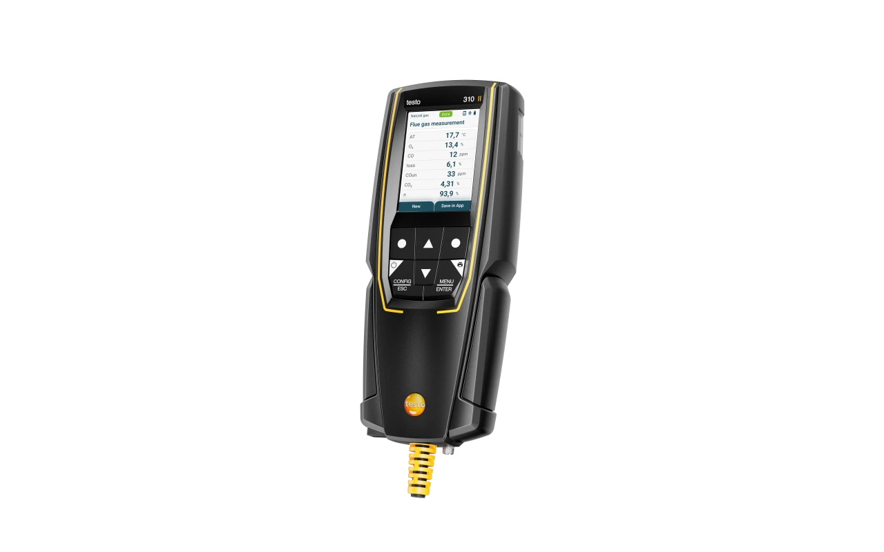 Wyposażony w prosty interfejs użytkownika z kolorowym ekranem, Testo 310 (2. generacji) oferuje cztery zintegrowane menu pomiarowe: spaliny, ciąg kominowy, CO w otoczeniu oraz ciśnienie. Wszystkie wyniki pomiarów są wyraźnie widoczne na wyświetlaczu, który dzięki wysokiej rozdzielczości umożliwia ich łatwą konfigurację.
