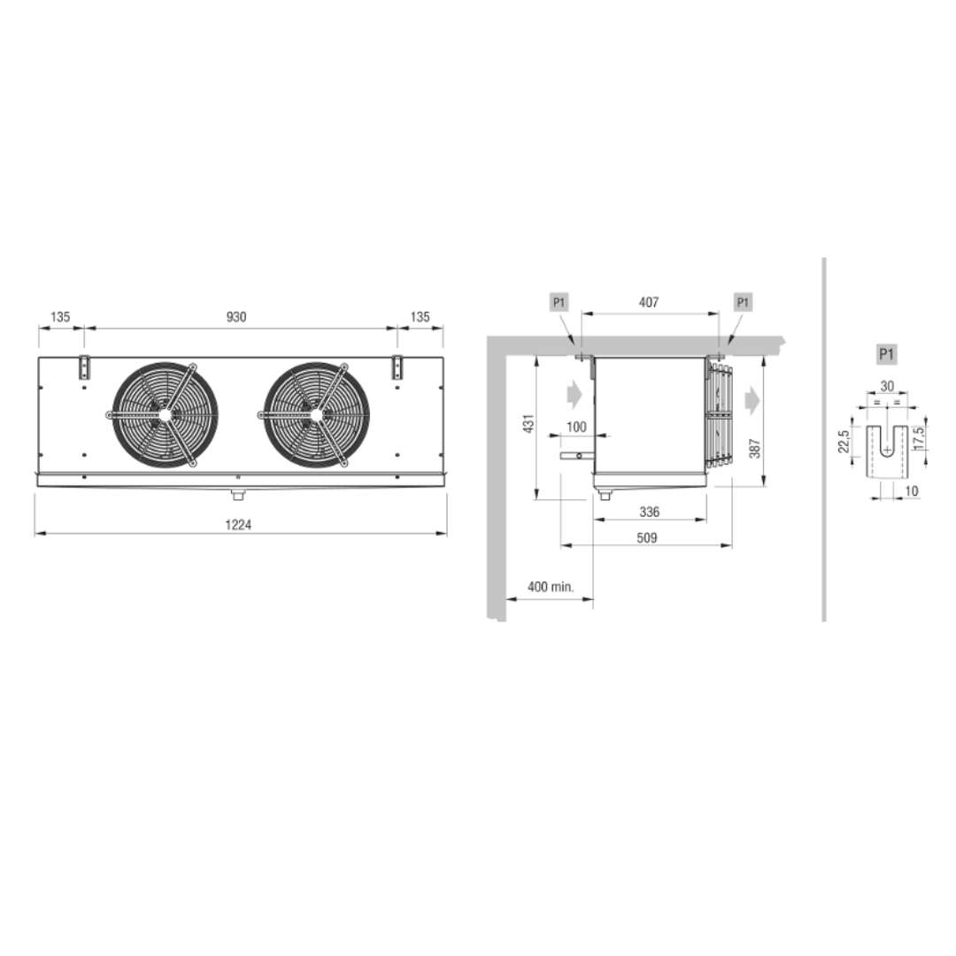 Chłodnica powietrza pozioma do komór chłodniczych i otwartych regałów chłodniczych.