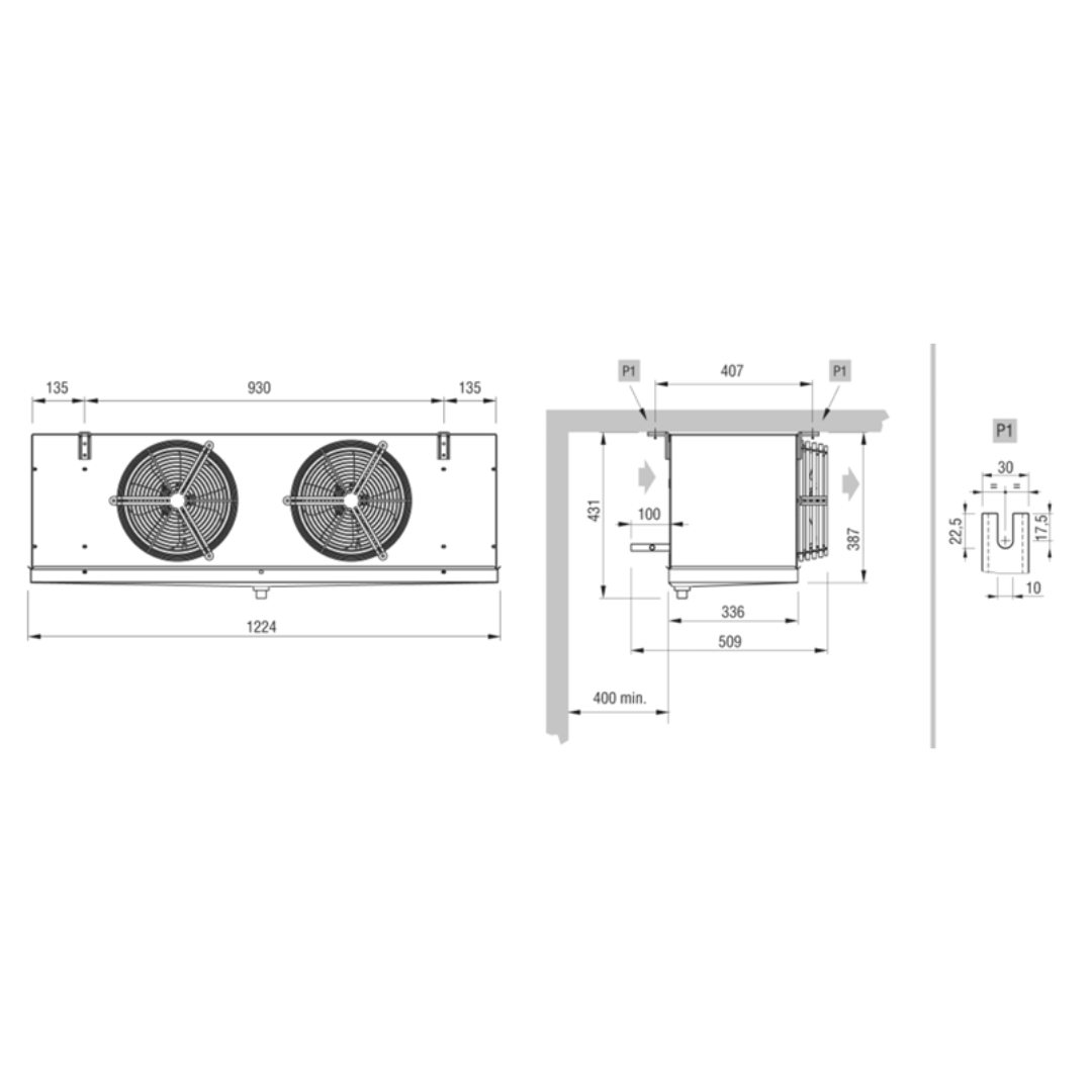 Jednowentylatorowa chłodnica podsufitowa: