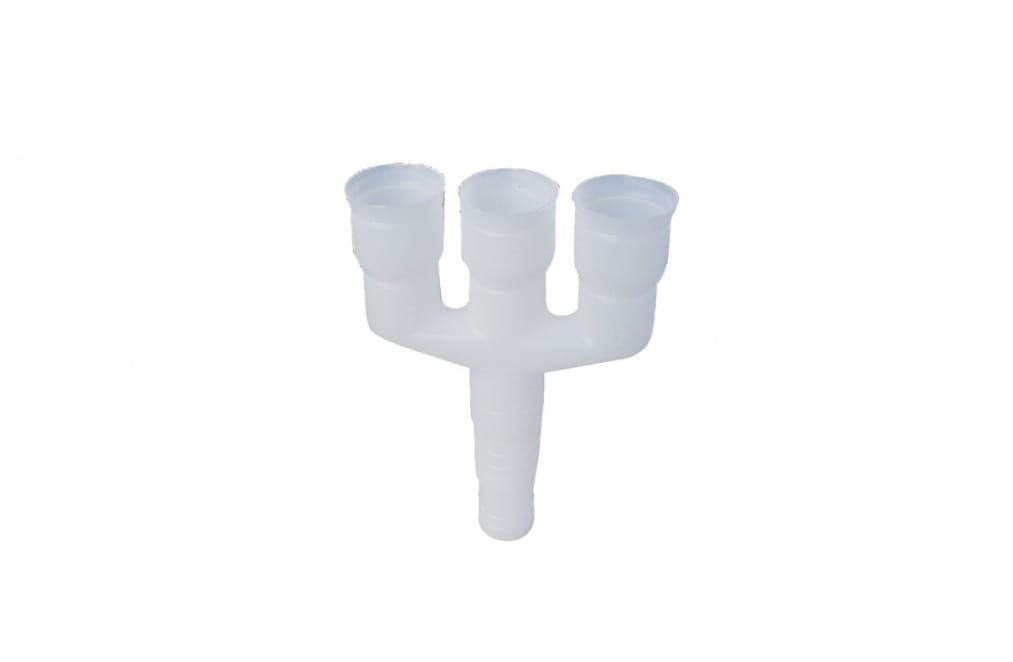 Czwórnik do odprowadzania skroplin pozwala połączyć 3 rury w jeden odpływ. Stopniowane przyłącze do średnic Ø 20-18-16 mm