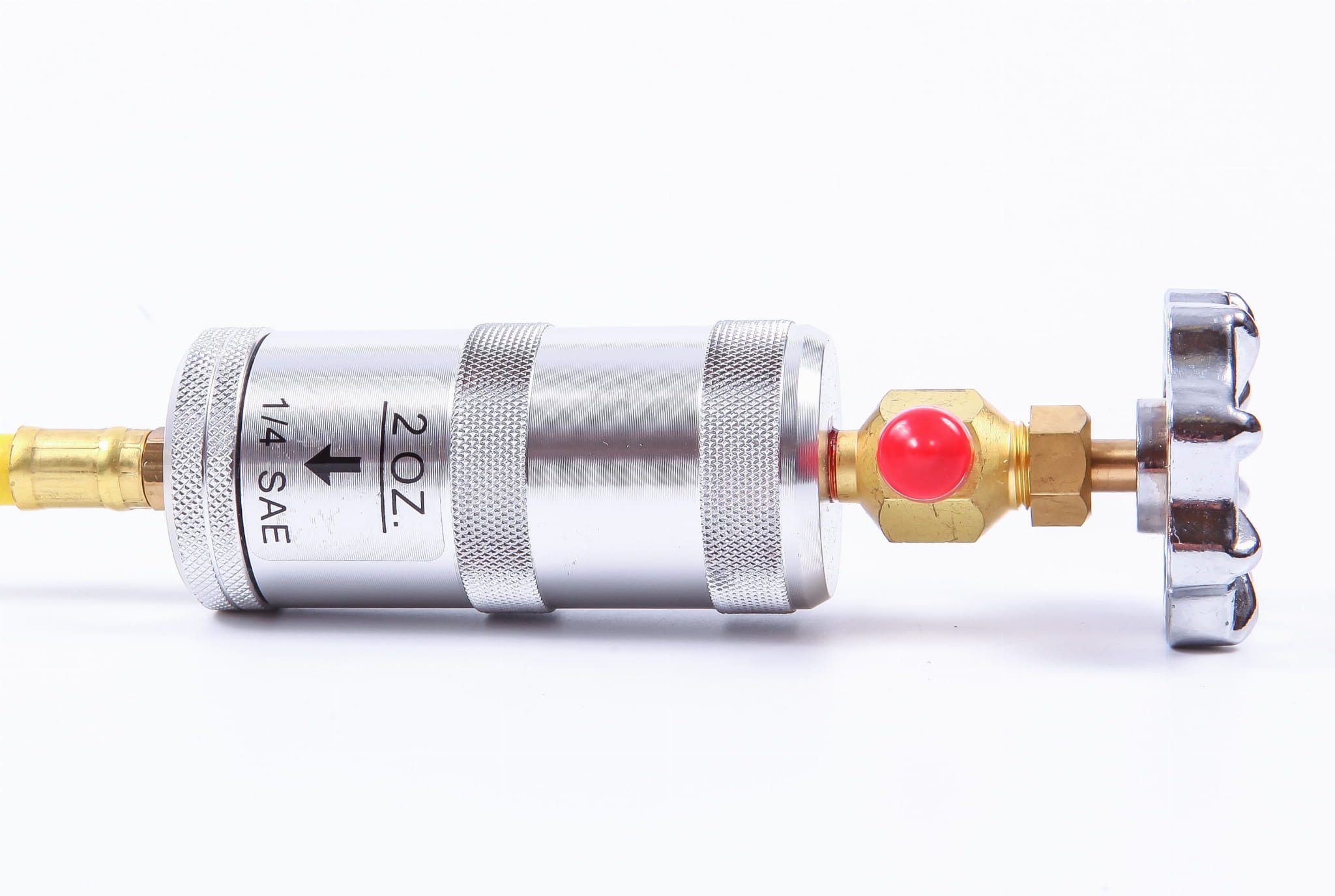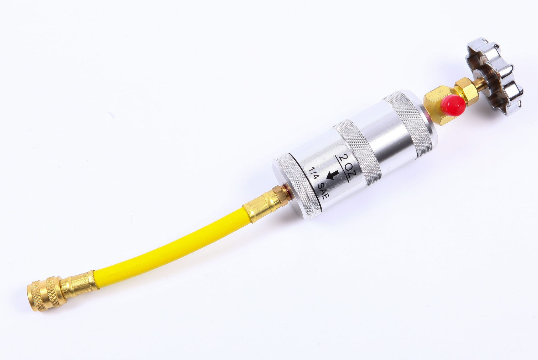 Dozownik oleju/barwnika UV znajduje zastosowanie przy serwisie samochodowych instalacji klimatyzacyjnych.