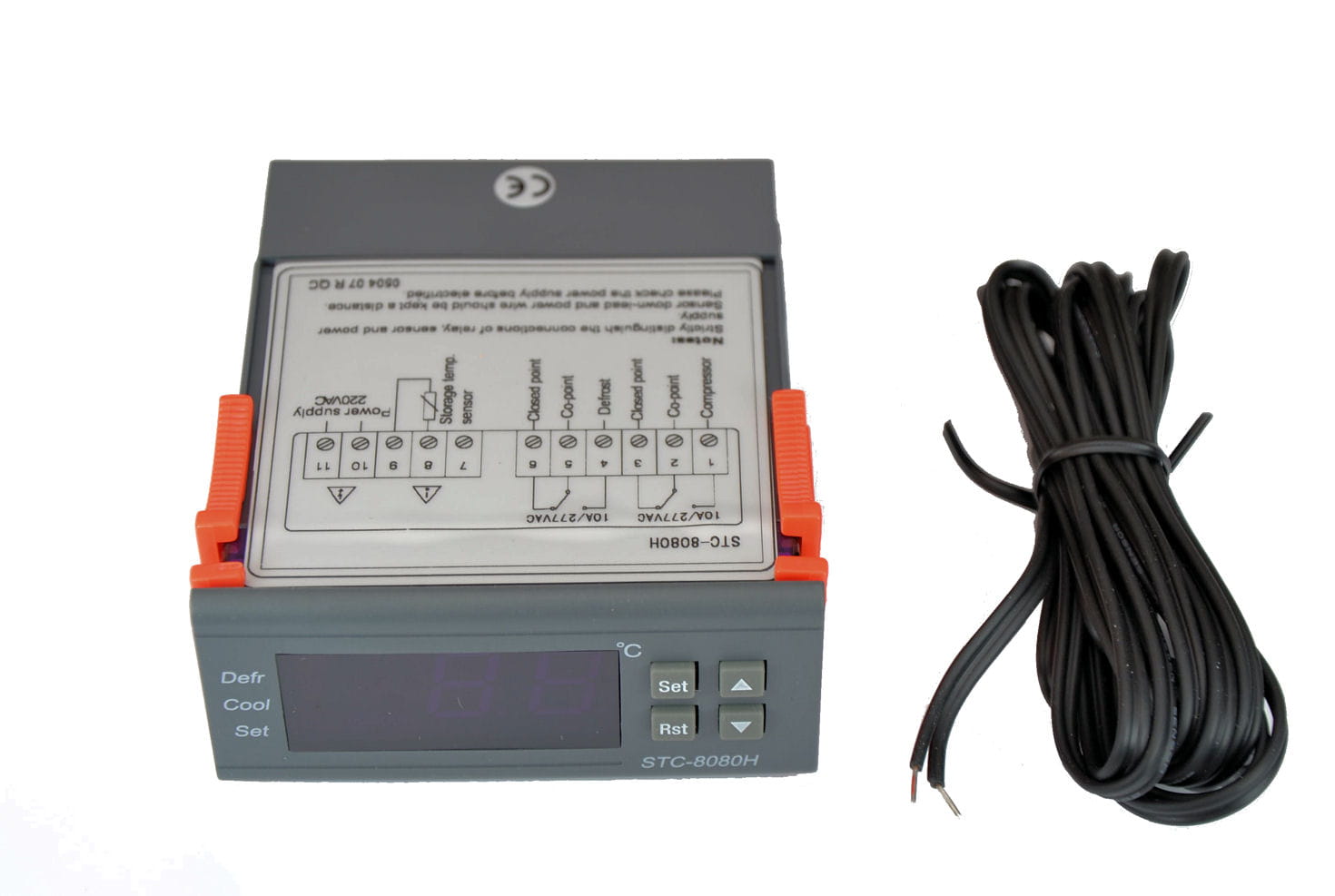 STC-8080H jest uniwersalnym sterownikiem chłodniczym z jednym czujnikiem temperatury, posiadajacym funkcje odtajania, alarmu, regulacji startu kompresora.