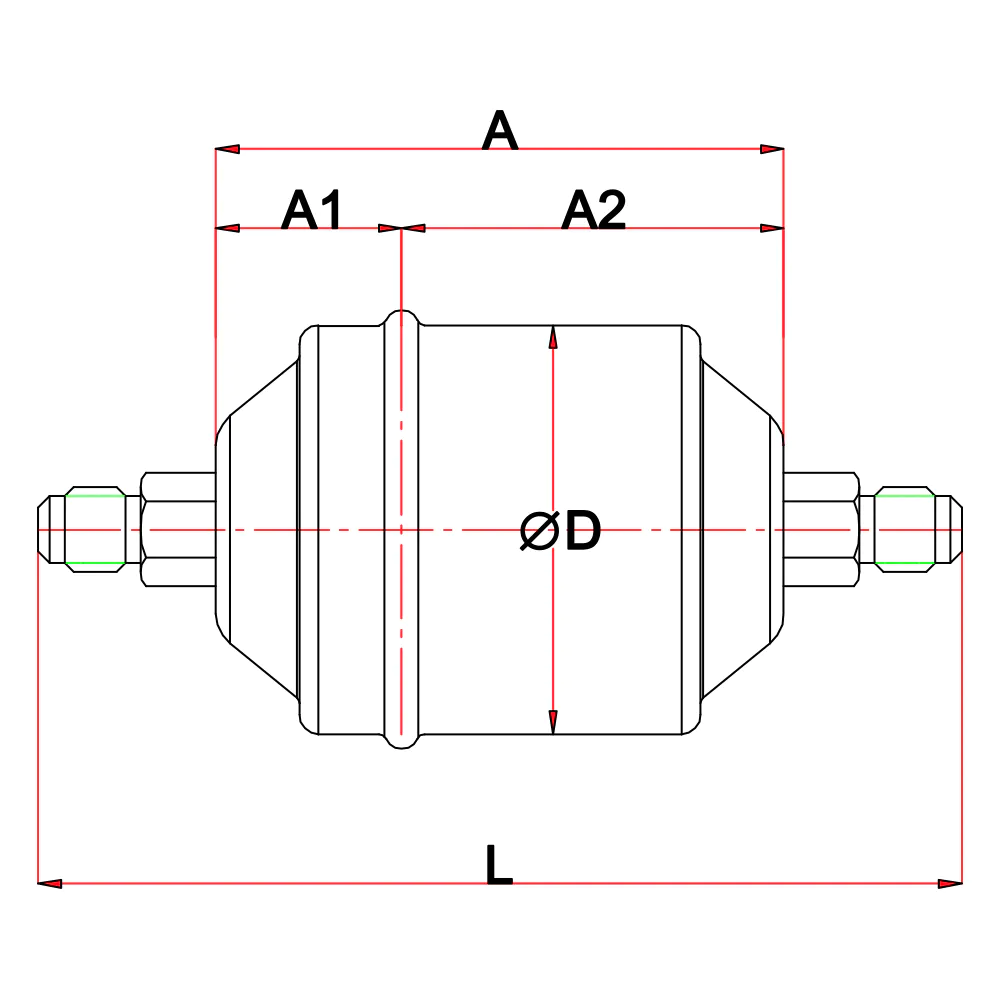 Filtr odwadniacz odpowiada za zabezpieczenie układu chłodniczego i klimatyzacyjnego przed wilgocią, kwasami i zanieczyszczeniami stałymi. Współpracuje z czynnikami HFC i HCFC oraz olejami POE i PAG. Wkład odpowiedzialny za zatrzymywanie wilgoci i zanieczyszczeń wykonany jest w 100% z sit molekularnych.