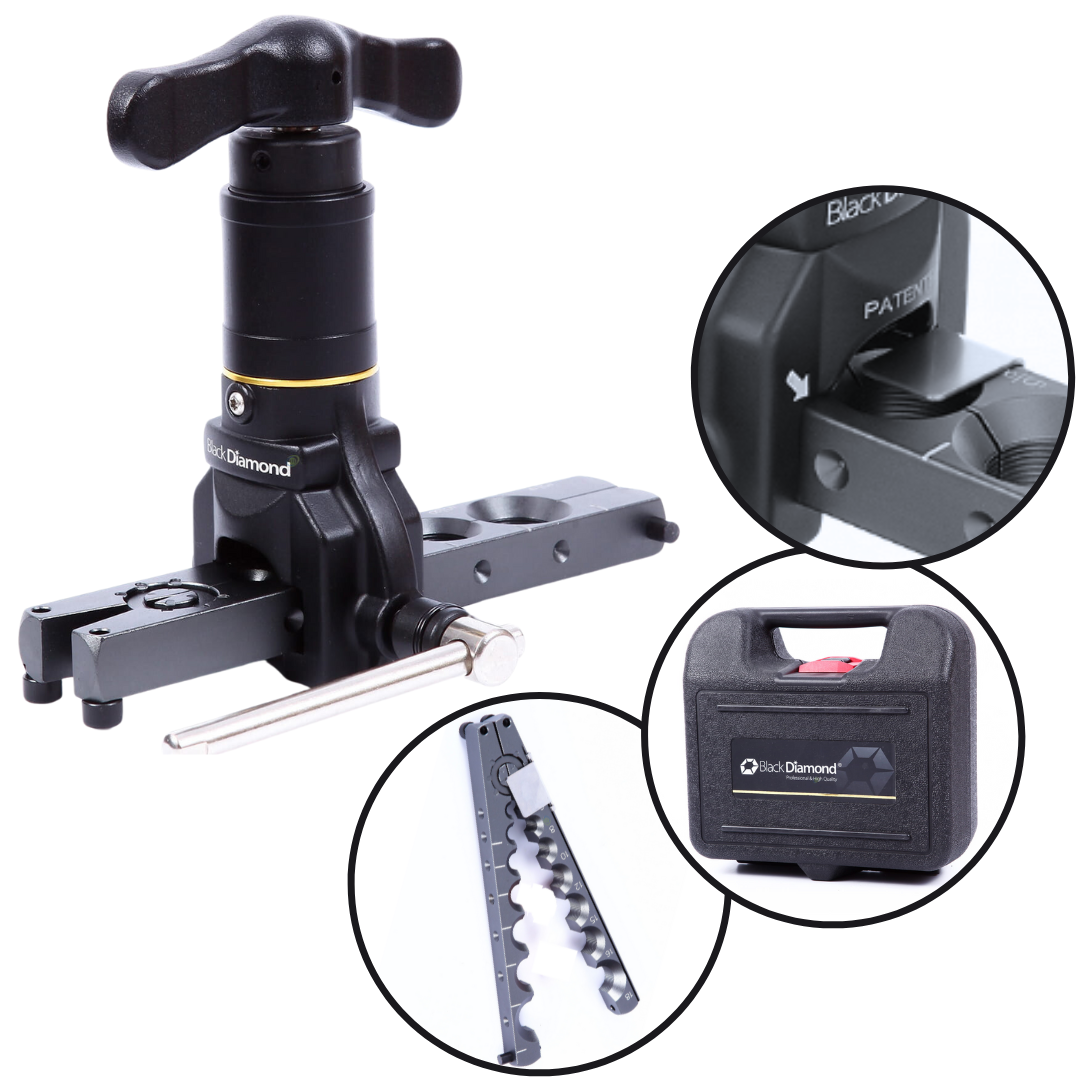 Kielicharka BLACK DIAMOND 15577 z podpięciem pod wkrętarkę, zestaw do kielichowania rur metrycznych, kielichownica z ogranicznikiem