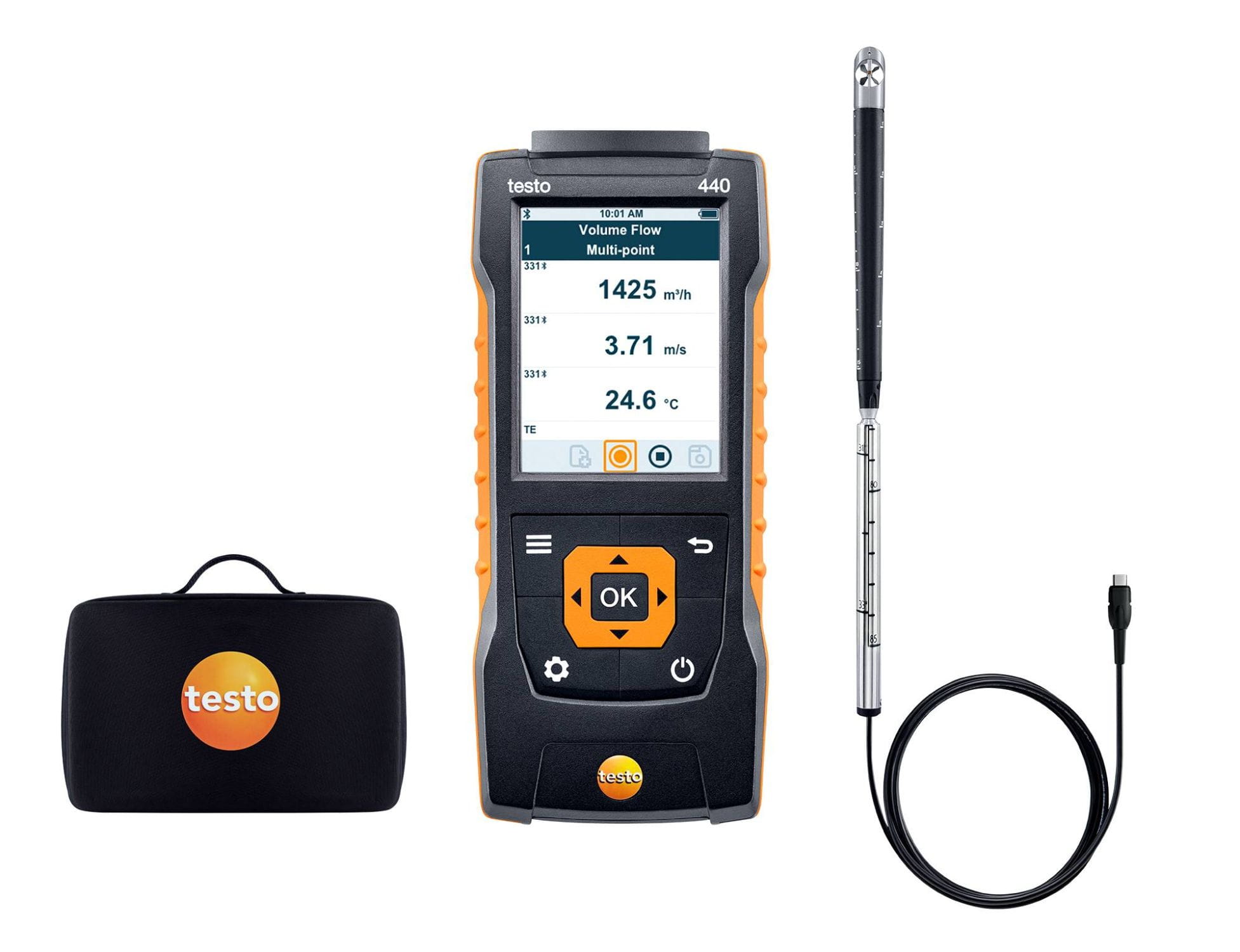 Miernik wielofunkcyjny, Zestaw Testo 440 z sondą wiatraczkową 16 mm do pomiarów prędkości przepływu