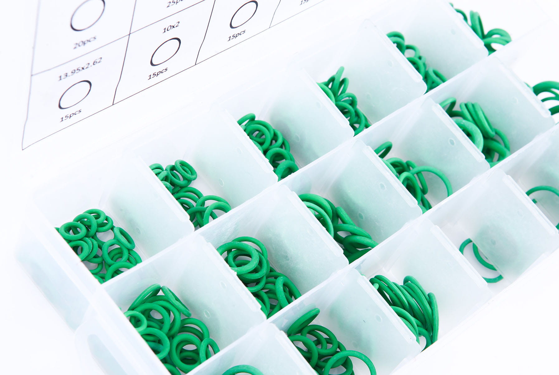 Komplet O-ringów w kolorze zielonym składający się z 420 elementów.