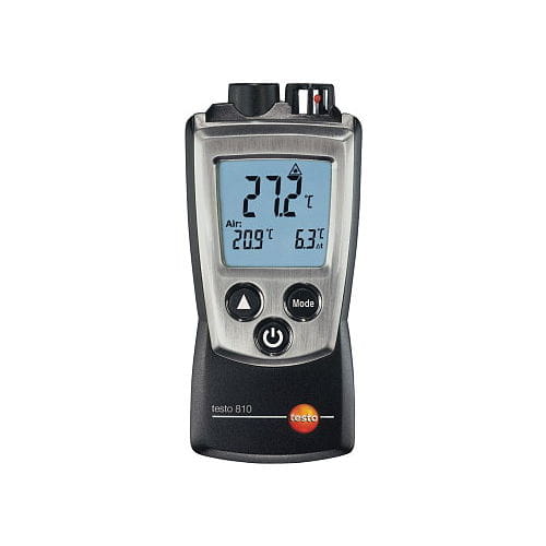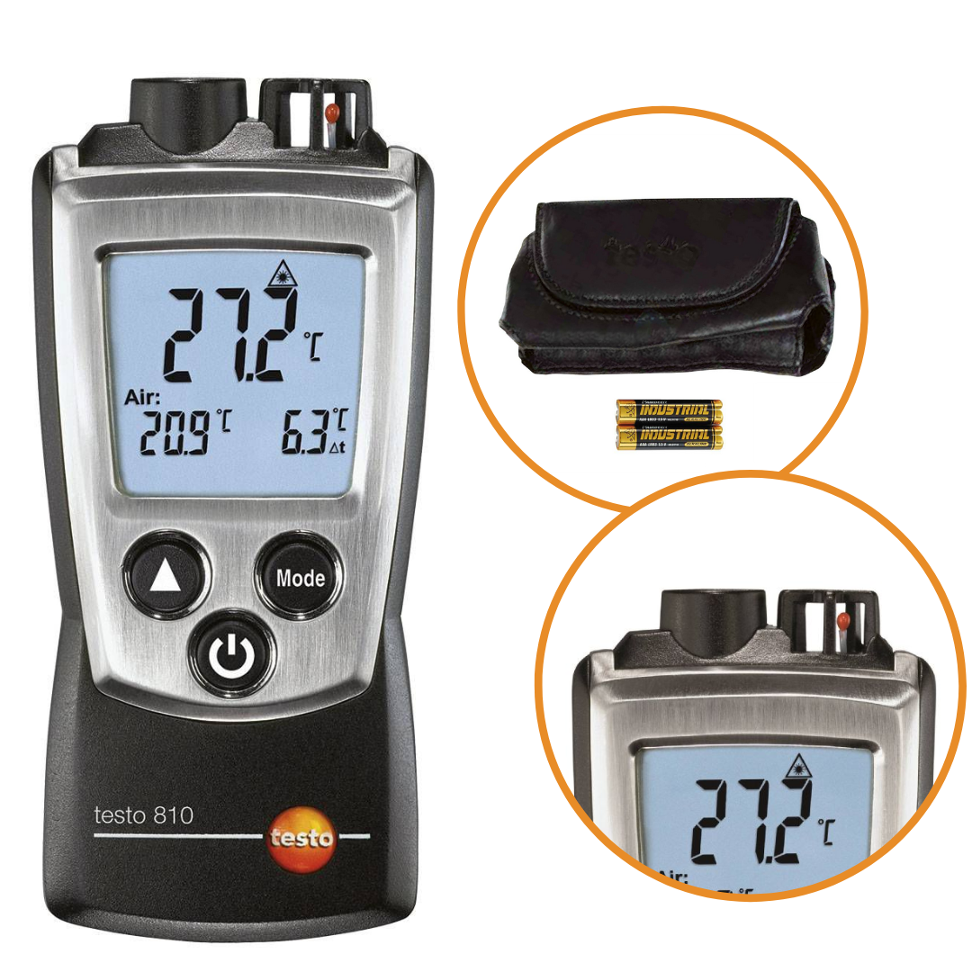 Testo 810 pozwala na jednoczesny pomiar temperatury powietrza i bezdotykowy pomiar temperatury powierzchni