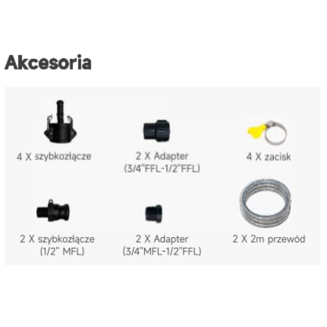 - 2x Adapter (3/4"FFL-1/2"FFL)