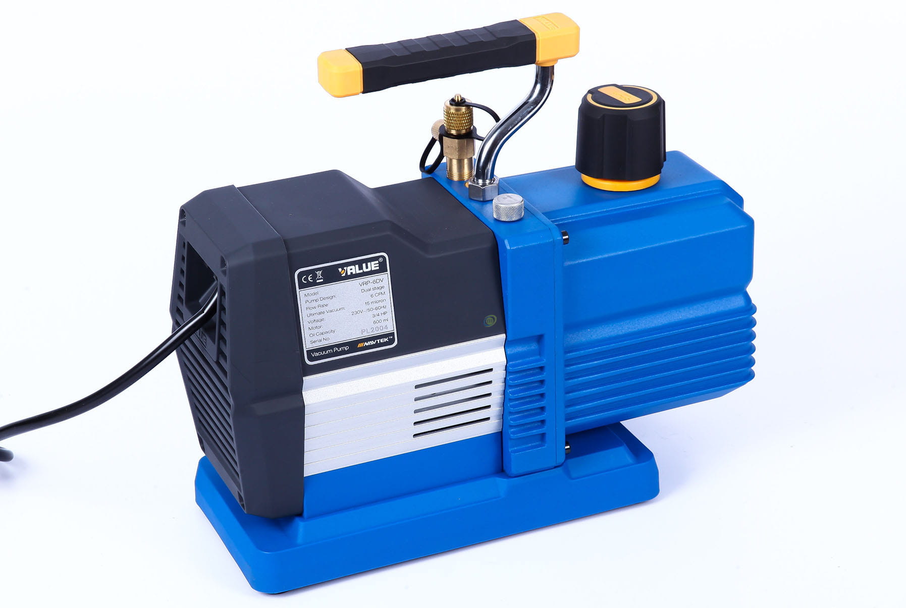 Pompa próżniowa to urządzenie służące do usuwania pozostałości gazów w zamkniętej przestrzeni (instalacji). Prezentowany model jest pierwszą na świecie inwerterową pompą próżniową połączoną z inteligentnym sterownikiem w jednym urządzeniu. Lekka wykorzystująca inwerterową technologię pompa próżniowa NAVTEK VRP-8Di 226 l/min zapewnia szybkie usunięcie pozostałych gazów w układzie (226 l/min) z najwyższą próżnią (15 mikronów).Wykorzystanie inwerterowego silnika pozwoliło na zredukowanie wagi urządzenia o ponad 30% (porównując do pozostałych producentów). Technologia pomiaru próżni precyzyjnie mierzy ciśnienie w systemie podczas całego procesu i pokazuje ciśnienie na wbudowanym cyfrowym wakuometrze, dzięki czemu masz pełny obraz pracy urządzenia. Prezentowana pompa próżniowa NAVTEK VRP-8Di 226 l/min posiada wbudowany zawór elektromagnetyczny pozwalający za zapobieganiu wstecznemu przepływowi oleju, oraz zachowaniu próżni w układzie podczas przerwy w zasilaniu lub przypadkowym rozłączeniu. Po uzyskaniu odpowiedniej głębokości próżni urządzenie wyda sygnał dźwiękowy, aby przypomnieć instalatorowi o zakończonej pracy. Pompa może być używana w instalacjach gdzie znajdował się czynnik chłodniczy R32,1234yf,R410A,R22,R134a itp.