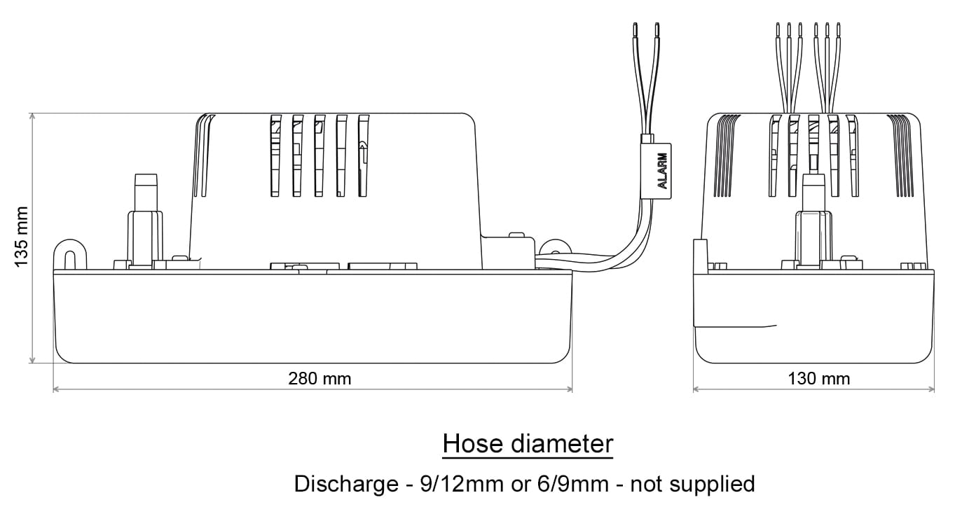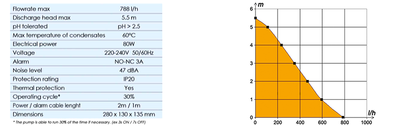 Pompka skroplin FLOWATCH TANK została zaprojektowana do odprowadzania skroplonej wody z instalacji klimatyzacyjnych, chłodniczych, kotłów gazowych, osuszaczy itp. Jest to pompka wyposażona w zbiornik o pojemności 1,3 l.