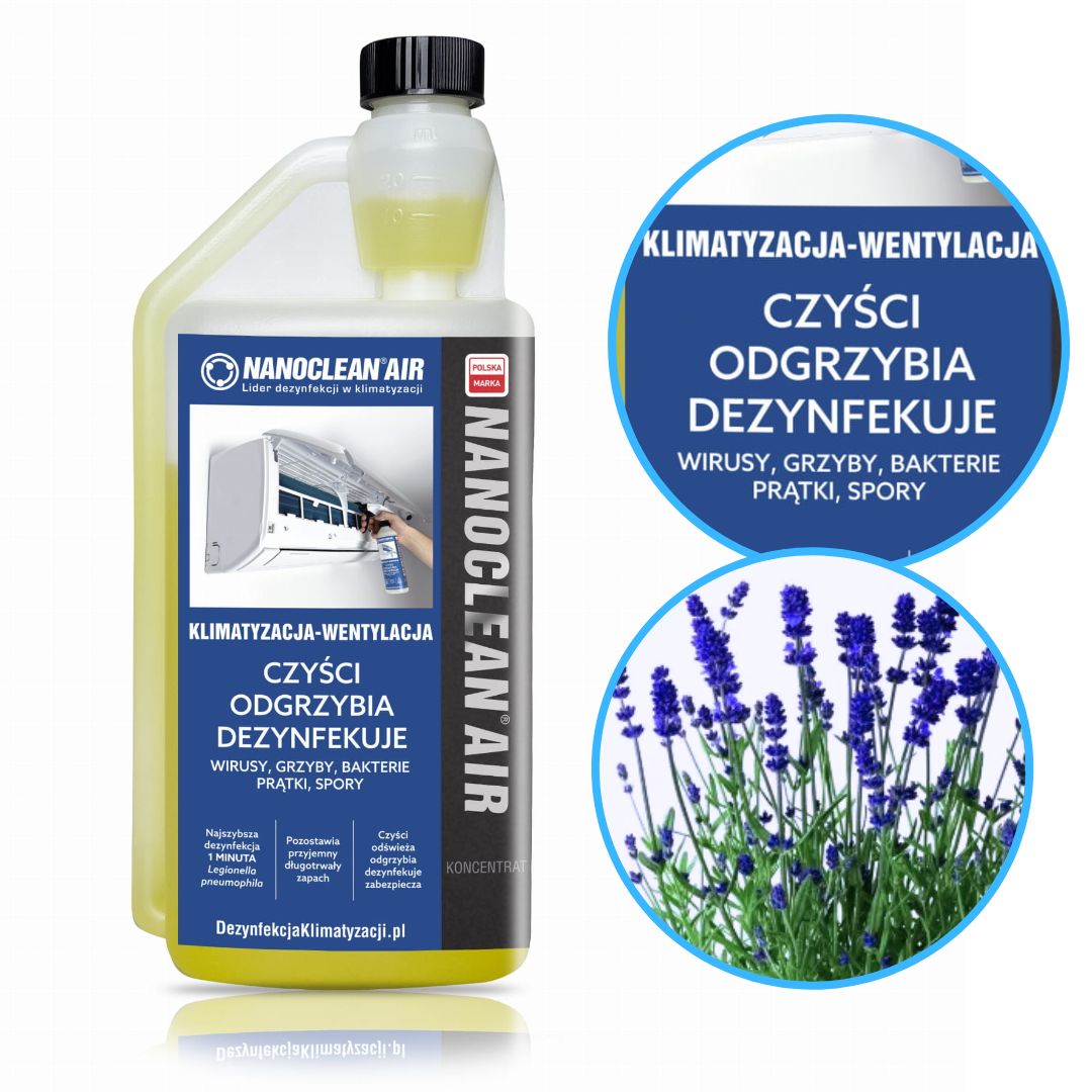 Preparat do dezynfekcji klimatyzacji 1L NANOCLEAN Air Lawenda Koncentrat biobójczy, wirusobójczy