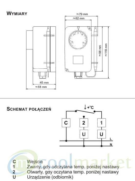 | Układów styków | SPDT, przełączne (grzanie lub chłodzenie) |