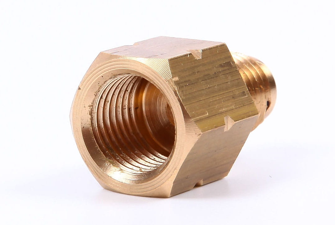 Uniwersalny adapter z mosiądzu do reduktora wodoru z uszczelką teflonową.