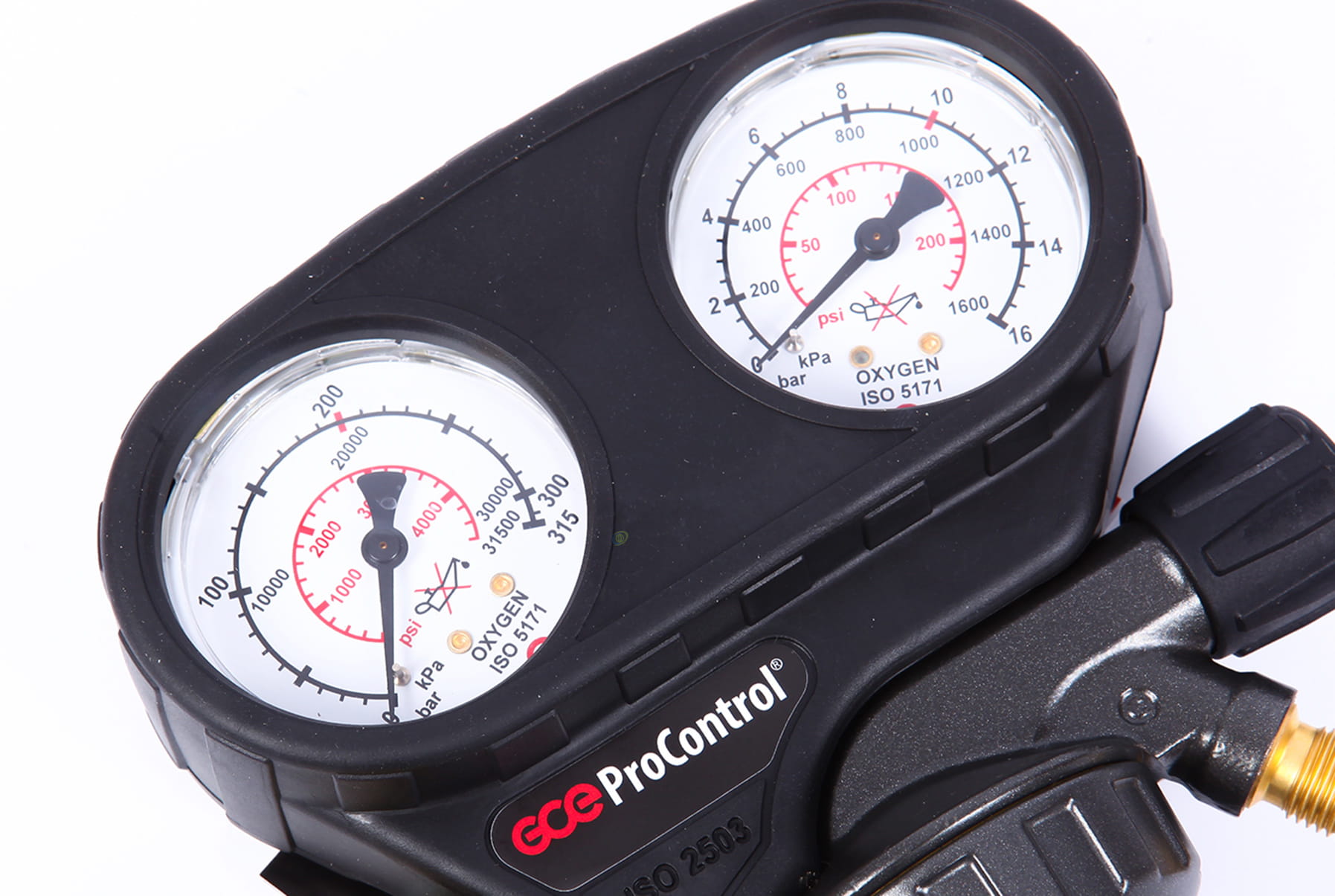 - Manometry wykonane zgodnie z normą ISO 5171, z bardzo kontrastową wskazówką i z trzema skalami z najczęściej używanymi jednostkami dla lepszej kontroli ciśnienia gazu