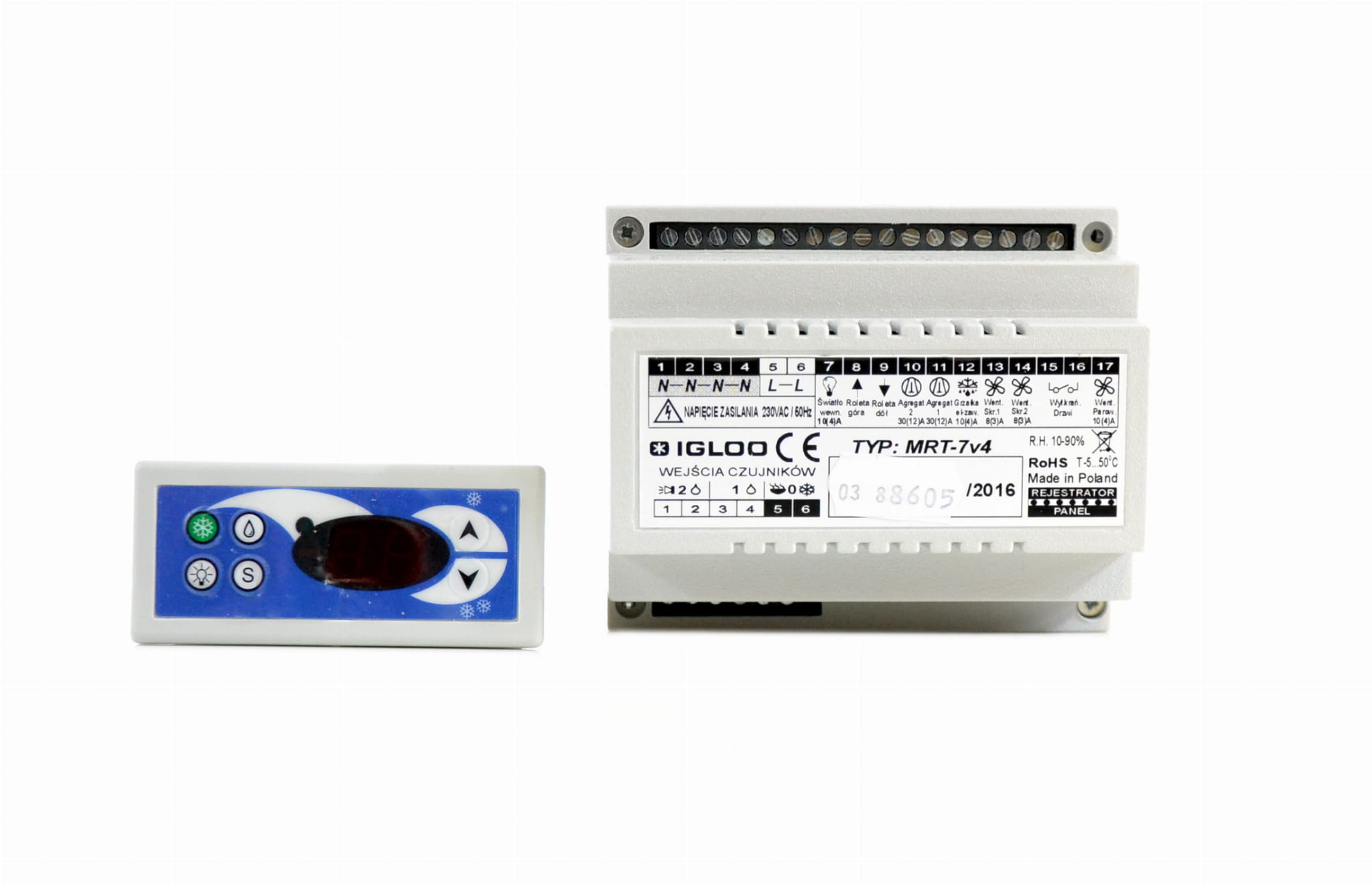 Regulator temperatury typu MRT-7 ze światłem, jest uniwersalnym mikroprocesorowym sterownikiem temperatury przeznaczonym do zastosowania w urządzeniach chłodniczych oraz chłodniczo-grzejnych
