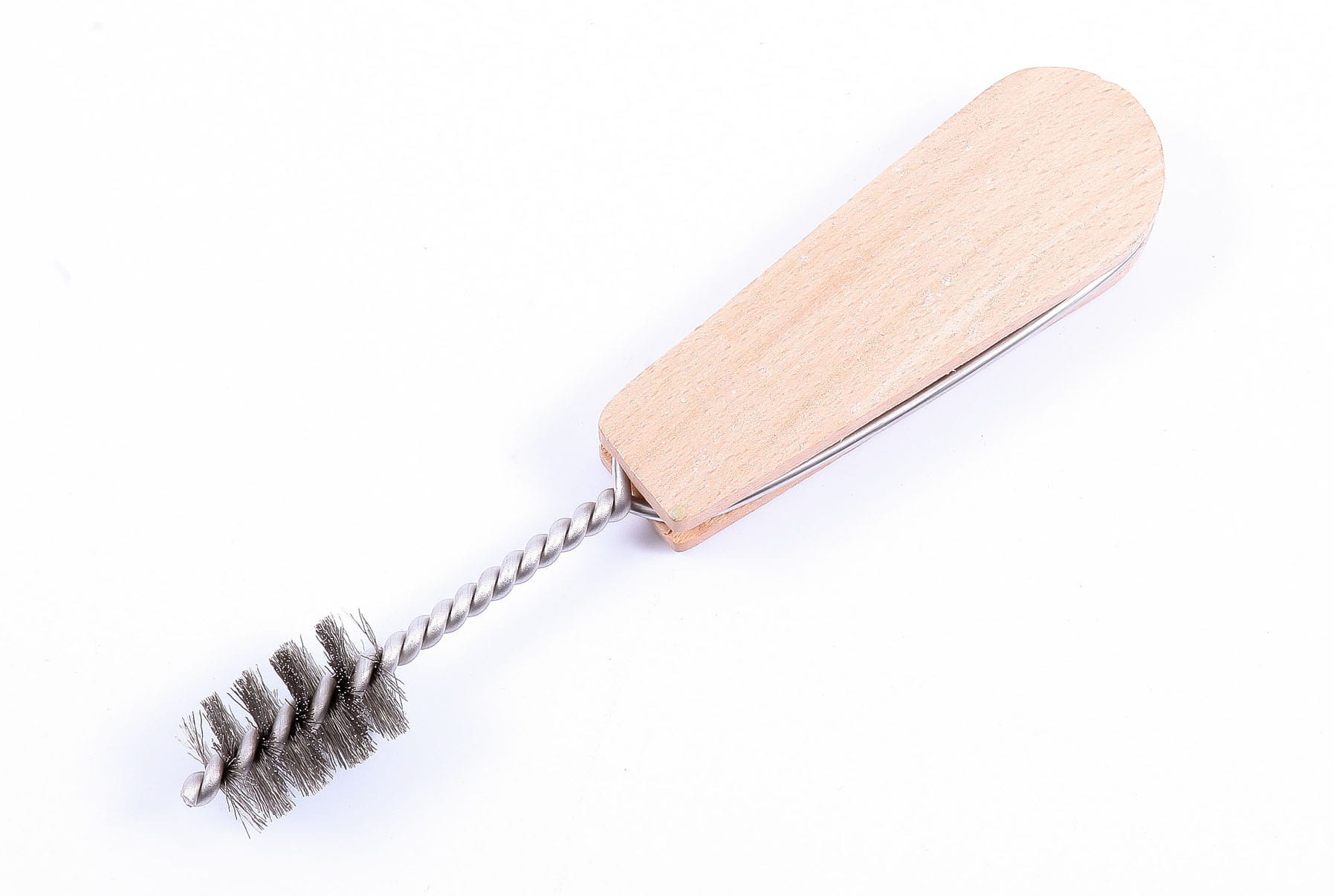 Szczotki z drewnianą rączką do czyszczenia z tlenków wewnętrznych powierzchni rur i kształtek z miedzi. Opiłki ze stali nierdzewnej nie powodują korozji. Część robocza wykonana jest z drutu V2A – 0,15 mm.