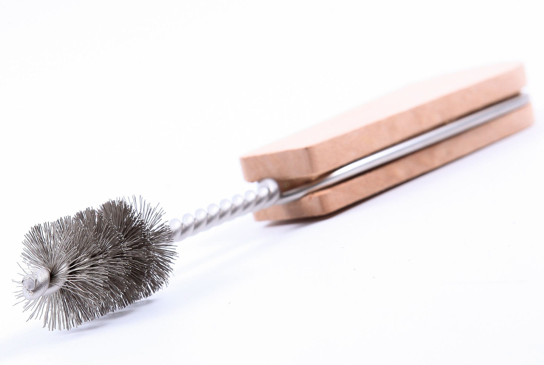 Szczotki z drewnianą rączką do czyszczenia z tlenków wewnętrznych powierzchni rur i kształtek z miedzi. Opiłki ze stali nierdzewnej nie powodują korozji. Część robocza wykonana jest z drutu V2A – 0,15 mm.