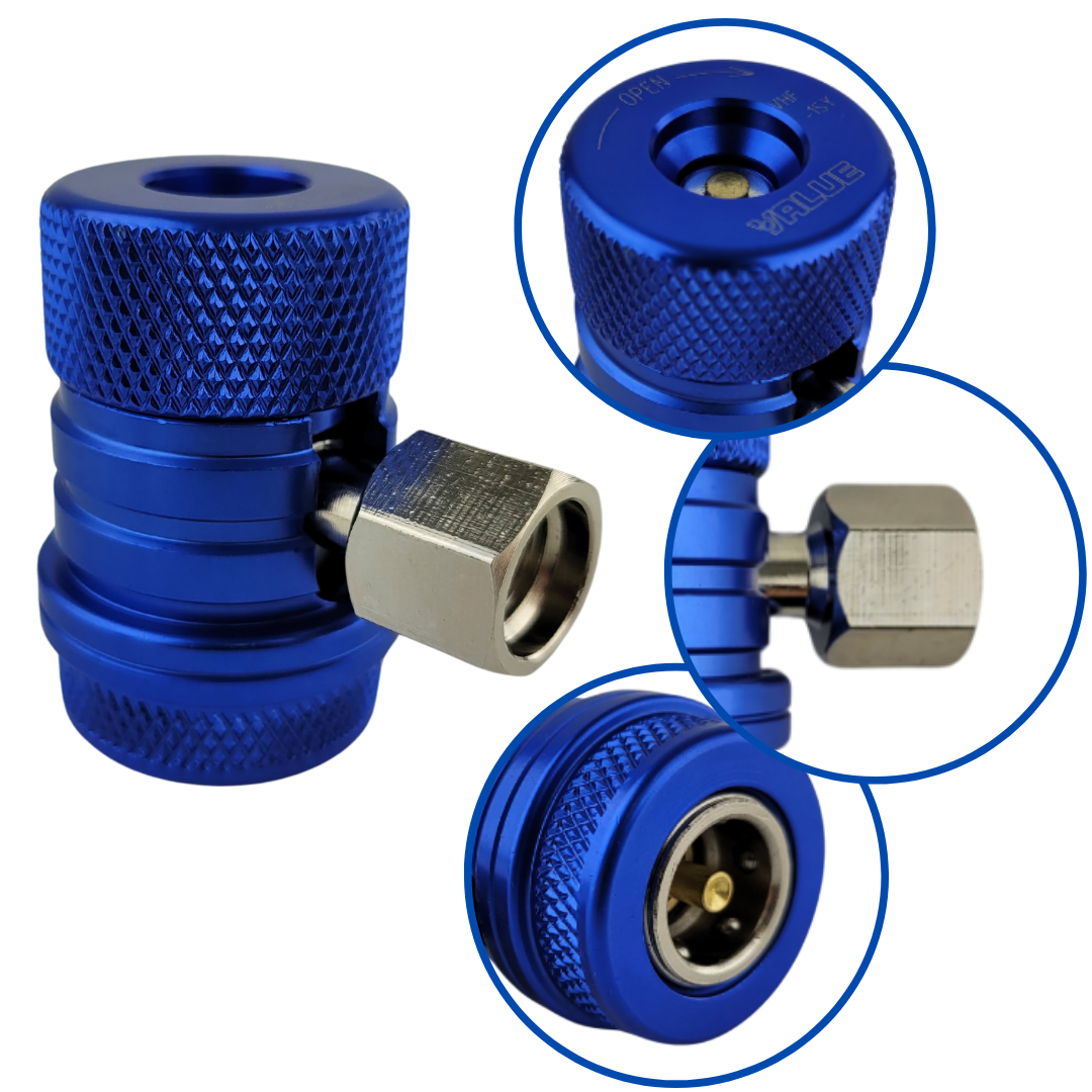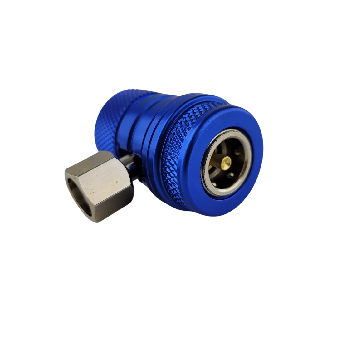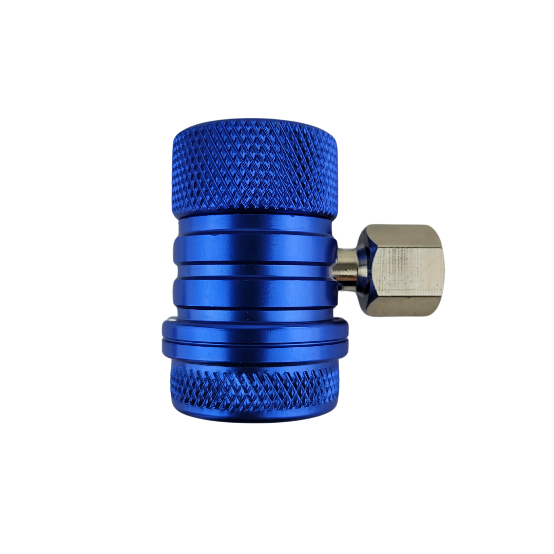 Szybkozłącze samochodowych układów klimatyzacyjnych, stosowane w serwisowaniu klimatyzacji samochodowej z czynnikiem chłodniczym R134a.