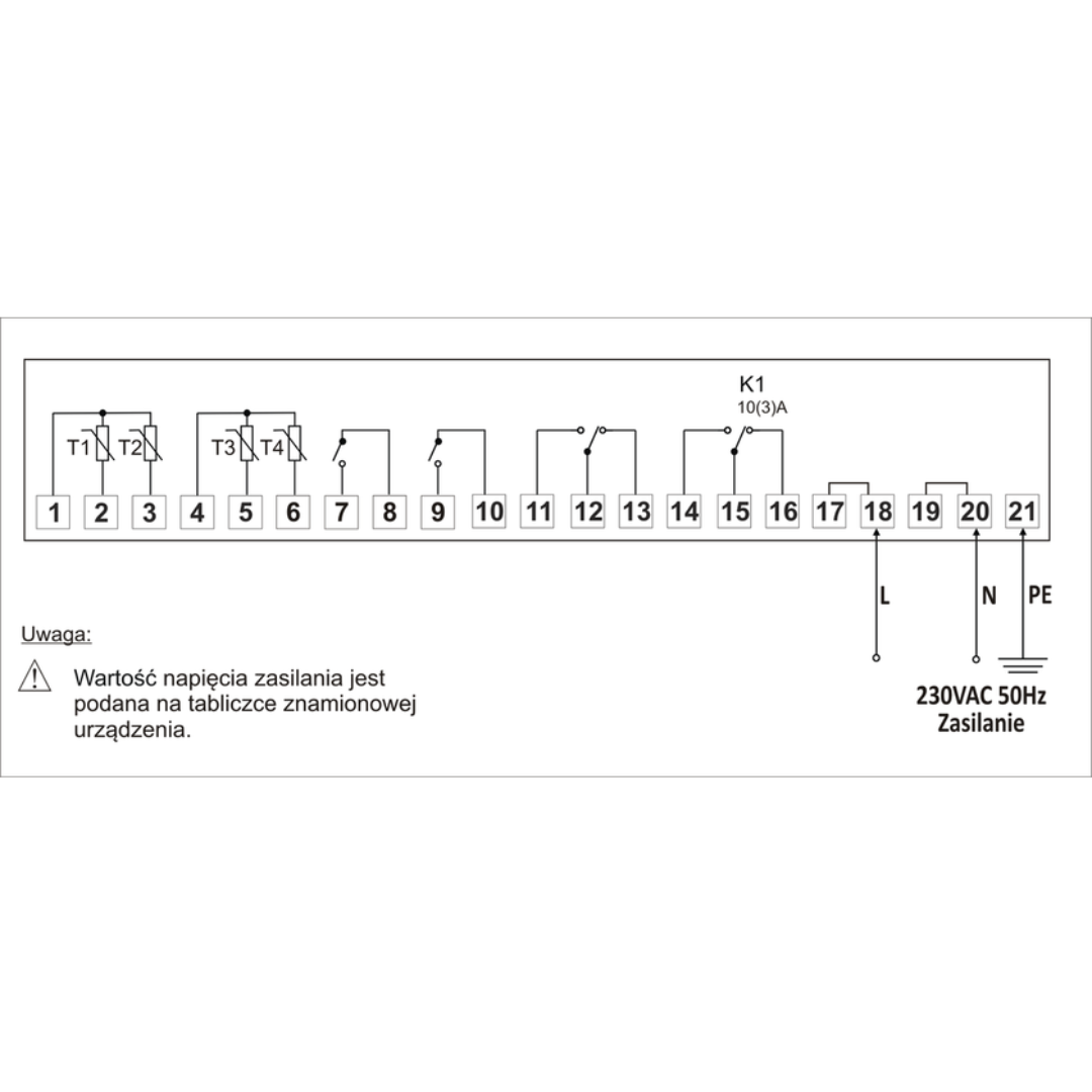 | Wejście | 4 x czujnik temperatury NTC 5[kOhm] przy 25[°C] |
