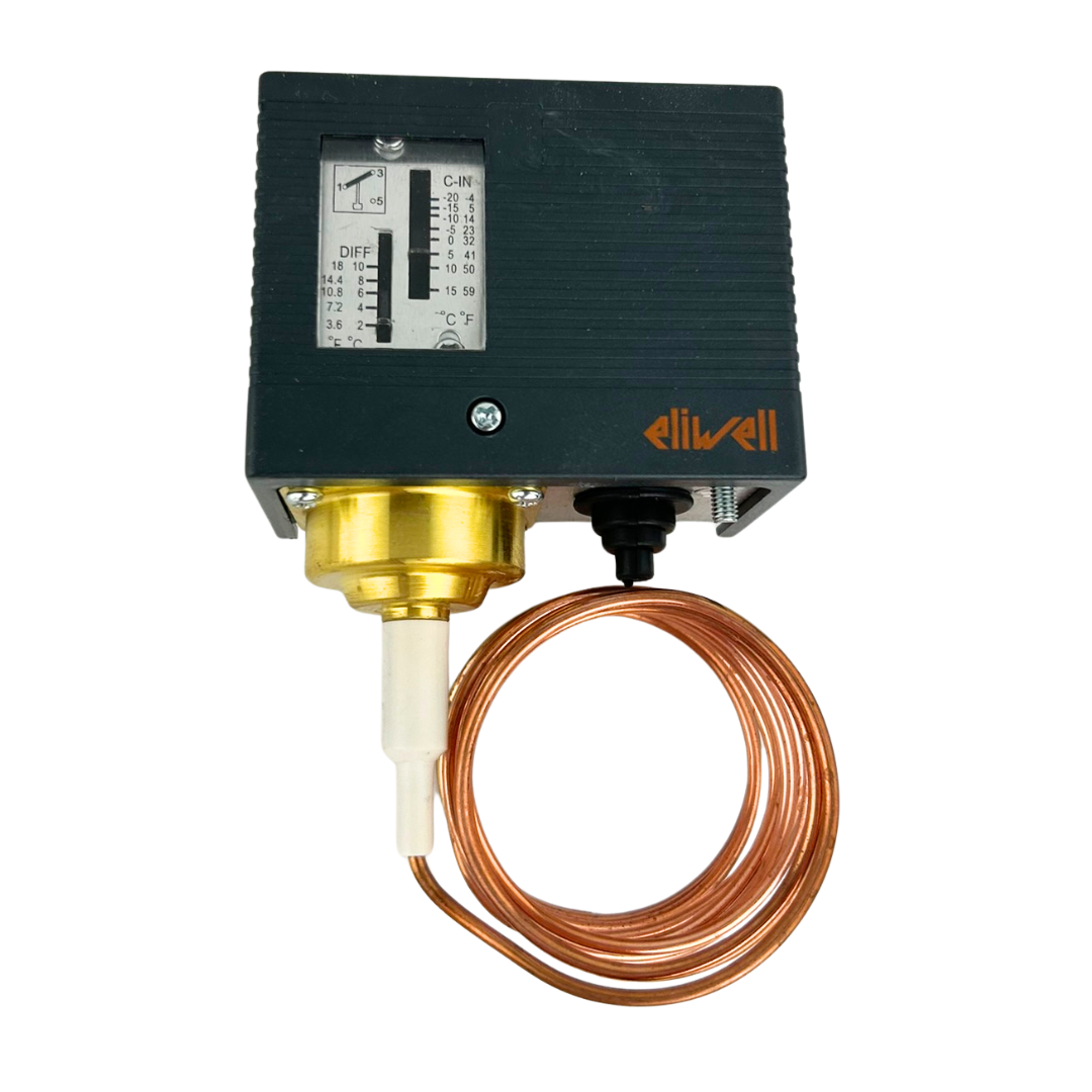 Termostat ELIWELL D16T15AA posiada kapilarę o długości 2m oraz automatyczny reset.