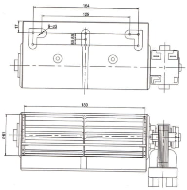 Wentylator promieniowy poprzeczny o długości turbiny 180mm LEWY