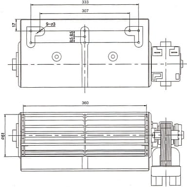 Rozmiar dmuchawy w mm: 360 x 61