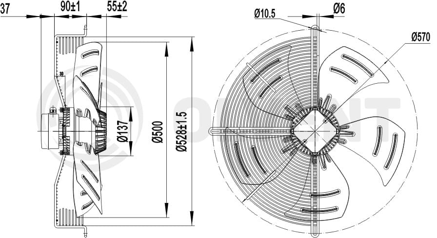 Wentylator przemysłowy osiowy ssący (ciągnący) OLVENT 500mm 230V wyciągowy