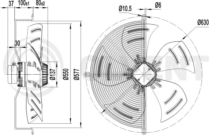 Wentylator przemysłowy osiowy ssący (ciągnący) OLVENT 550mm 400V wyciągowy