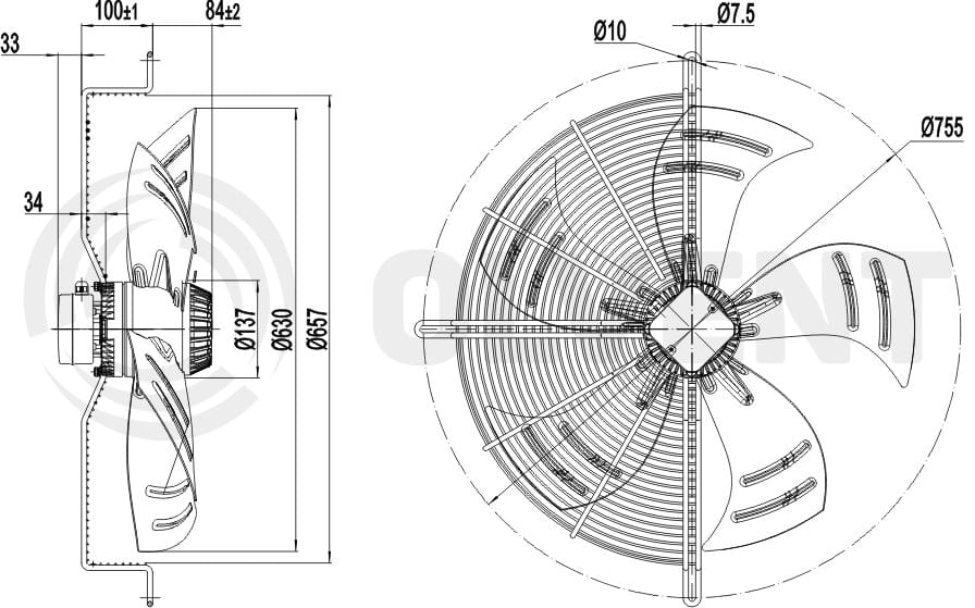 Wentylator przemysłowy osiowy ssący (ciągnący) OLVENT 630mm 400V wyciągowy