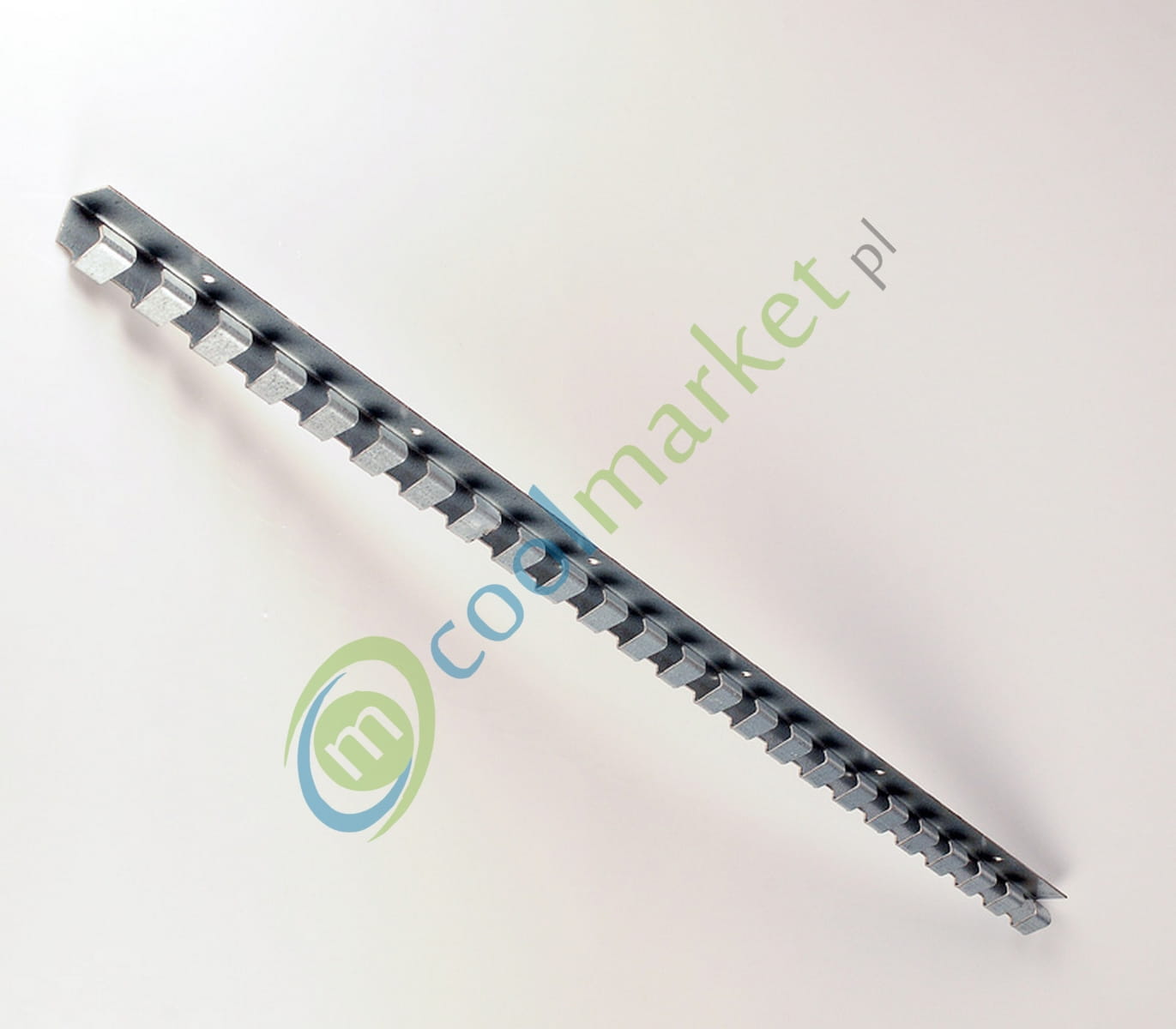 Wieszak grzebieniowy jest wykonany ze stali ocynkowany. Dzięki dwóm zestawom otworów montażowych przystosowany jest do instalacji bezpośrednio na ścianę lub pod nadproże. Wieszak na całej swojej długości posiada haczyki, które pozwalają na nałożenie perforowanych płytek w mniejszych lub większych zakładkach – co czyni bramę bardziej szczelną w zależności od potrzeb i miejsca montażu naszej kurtyny.