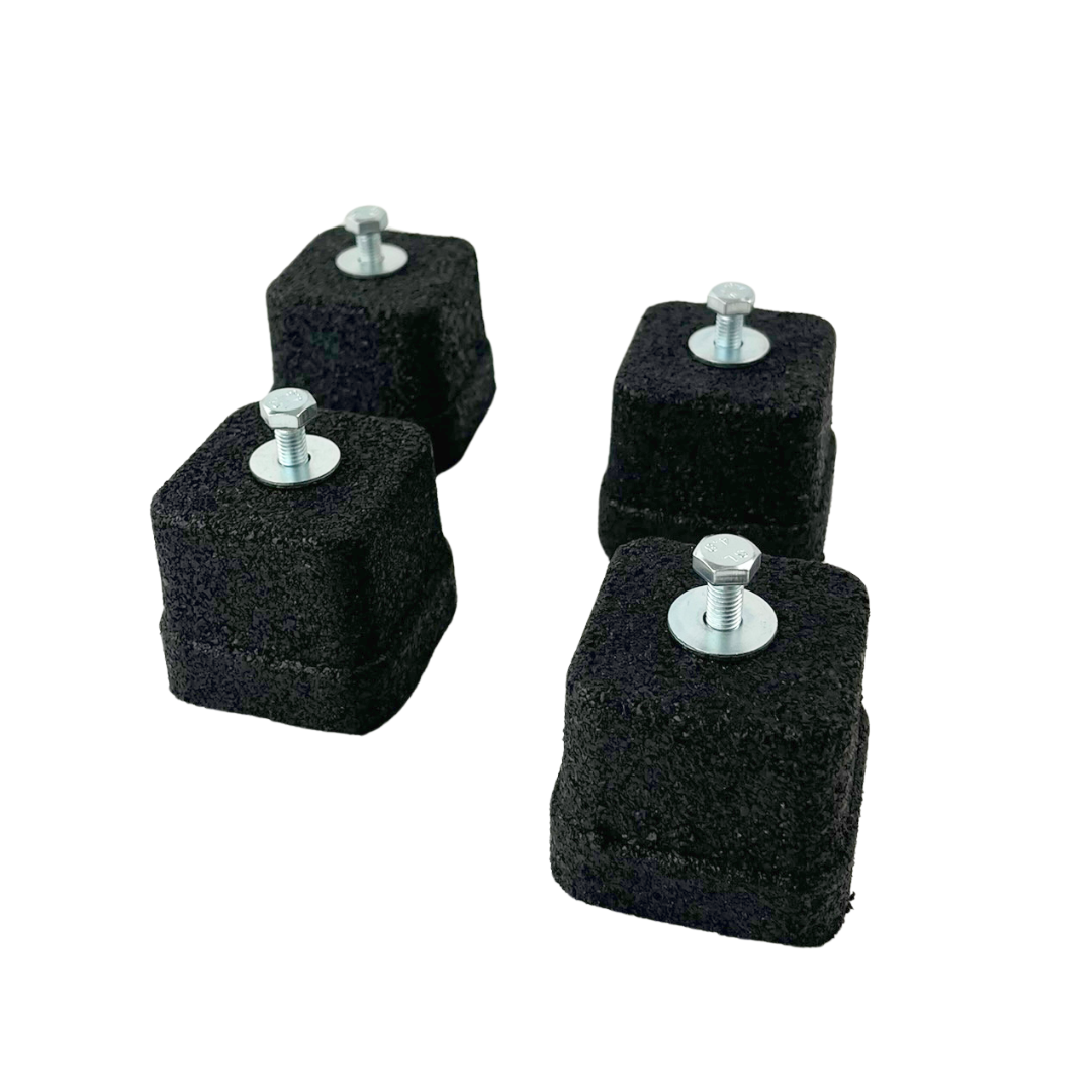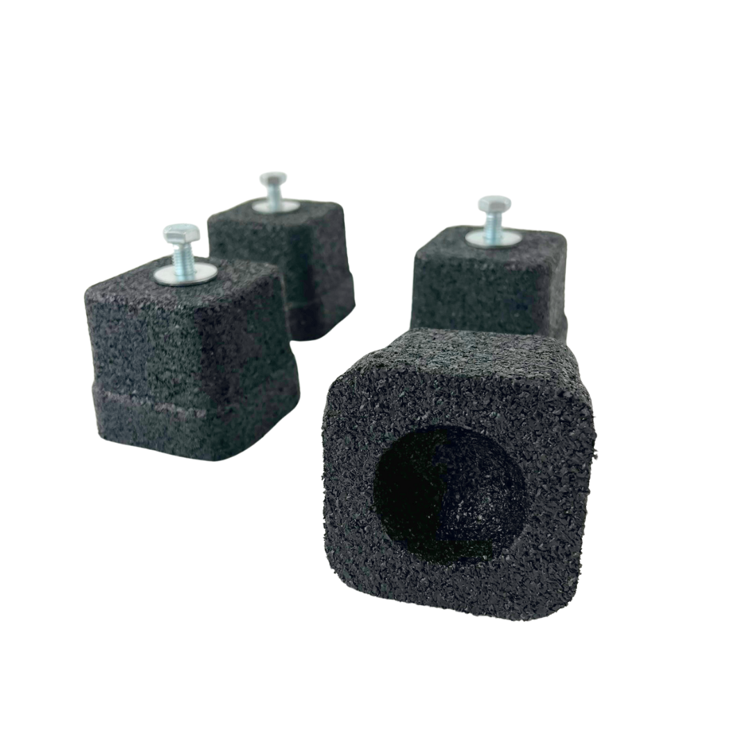 Wsporniki wykonane z naturalnej wulkanizowanej gumy anty-UVA. W komplecie ze śrubami mocującymi, podkładkami i nakrętkami M8.