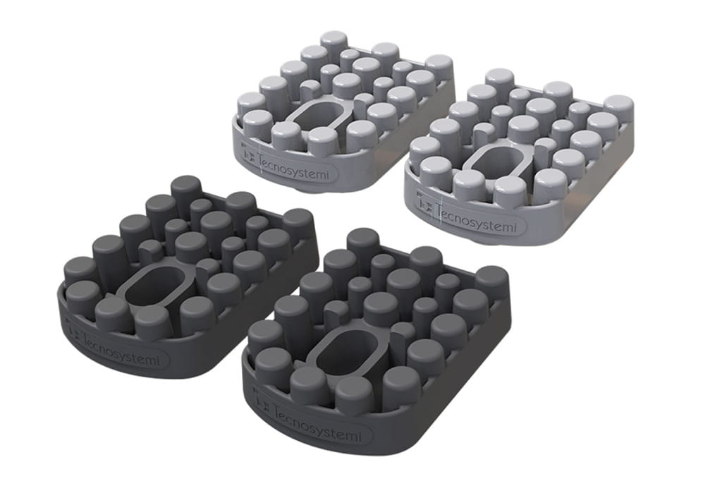 W zestawie znajdują się dwa rodzaje podkładek antywibracyjnych, zapewniający prawidłowy rozkład mas urządzenia i odpowiedni poziom wytłumienia drgań.
