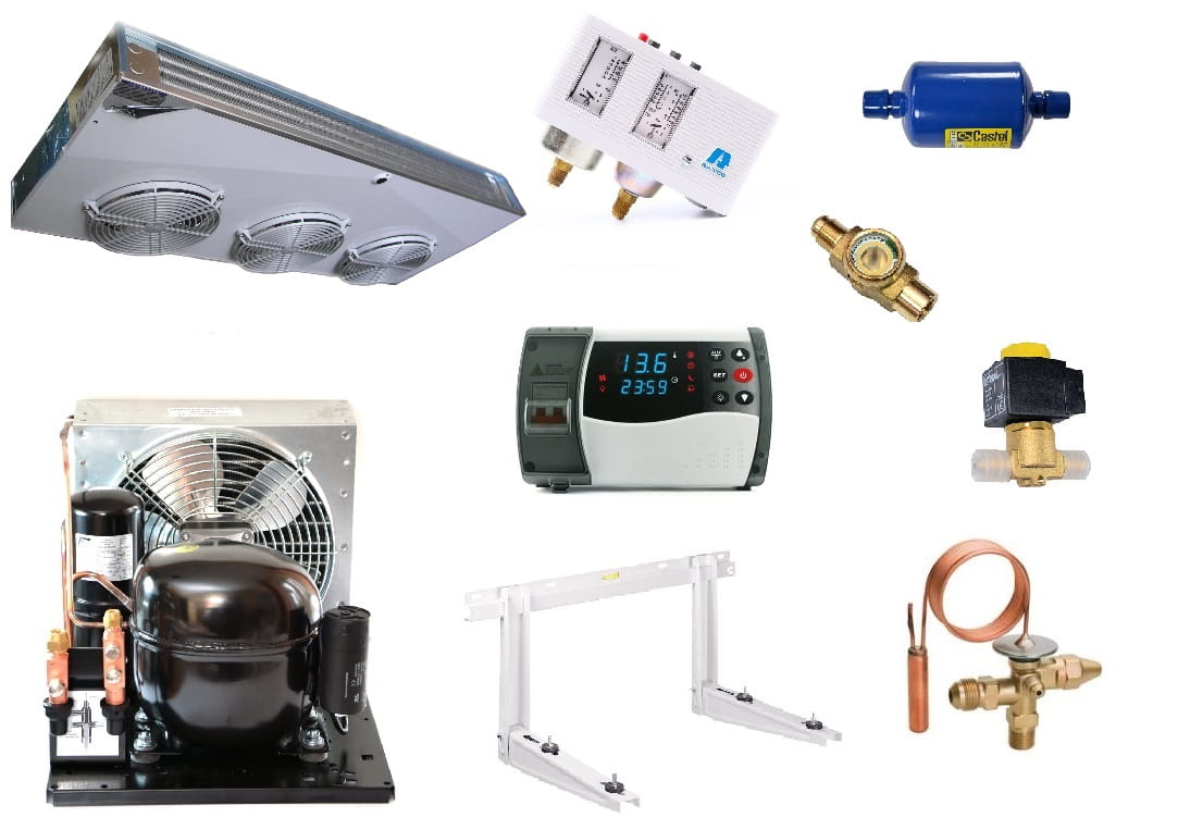 W skład zestawu wchodzą wszystkie niezbędne elementy do złożenia układu chłodniczego przez profesjonalnego serwisanta.