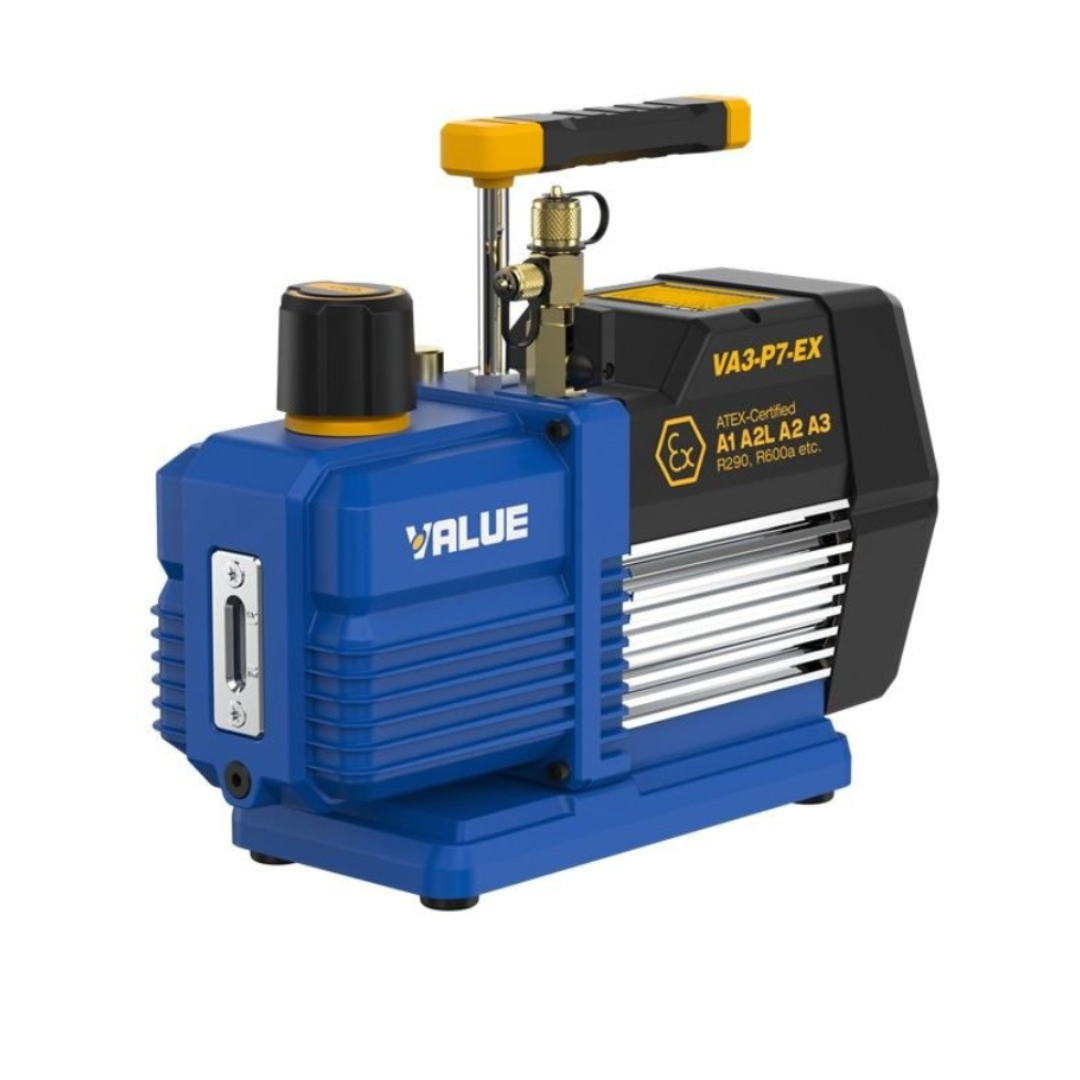 Przeciwwybuchowa pompa próżniowa przeznaczona do pracy z łatwopalnymi czynnikami chłodniczymi, w tym R290. Wysoka wydajność 198 l/min pozwala na szybkie wytworzenie głębokiej próżni, skutecznie usuwając wilgoć i zanieczyszczenia z instalacji. Solidna konstrukcja i wysoki standard wykonania gwarantują bezpieczną oraz długotrwałą eksploatację.