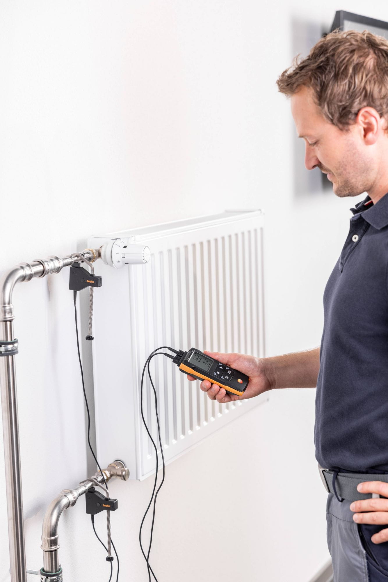 Typowym zastosowaniem testo 922 jest na przykład kontrola temperatury zasilania/powrotu na zaworach obiegów grzewczych. W zestawie znajdują się dwie sondy termoparowe typu K, ale termometr testo 922 jest również kompatybilny z innymi dostępnymi powszechnie sondami TC typu K.