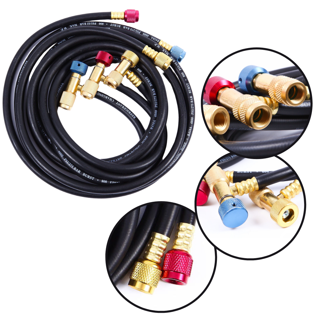 Węże ciśnieniowe posiadają zaworki z ruchomym popychaczem, który otwiera zaworek serwisowy. Dzięki jego zastosowaniu ogranicza się do minimum wyciek czynnika chłodniczego z instalacji oraz ogranicza możliwość kontaktu instalatora z czynnikiem chłodniczym co znacząco poprawia bezpieczeństwo pracy serwisanta.