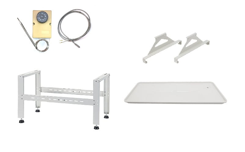 Zimowy zestaw RODIGAS pod pompy ciepła i klimatyzatory; stelaż, taca ociekowa, grzałka, termostat
