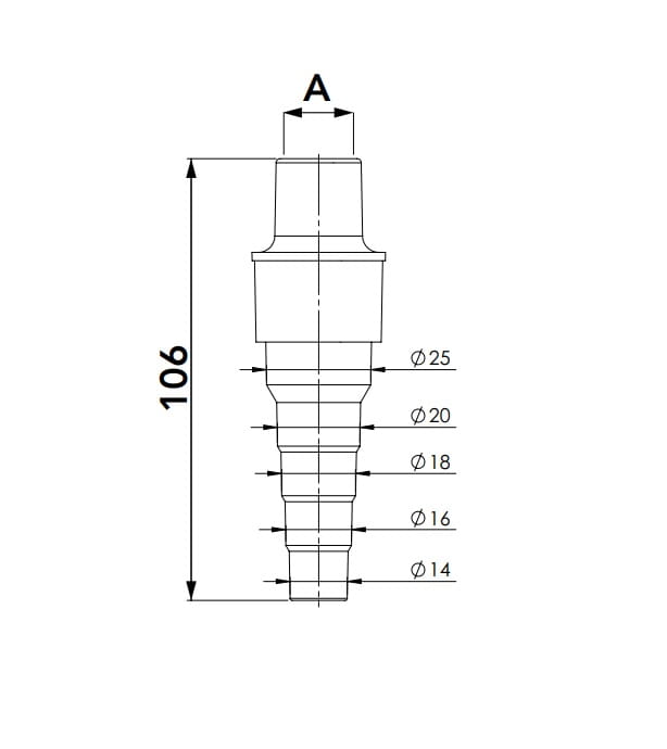 Składa się z dwóch elementów, gumowej nakładki o średnicy 40 mm oraz stopniowanego króćca.