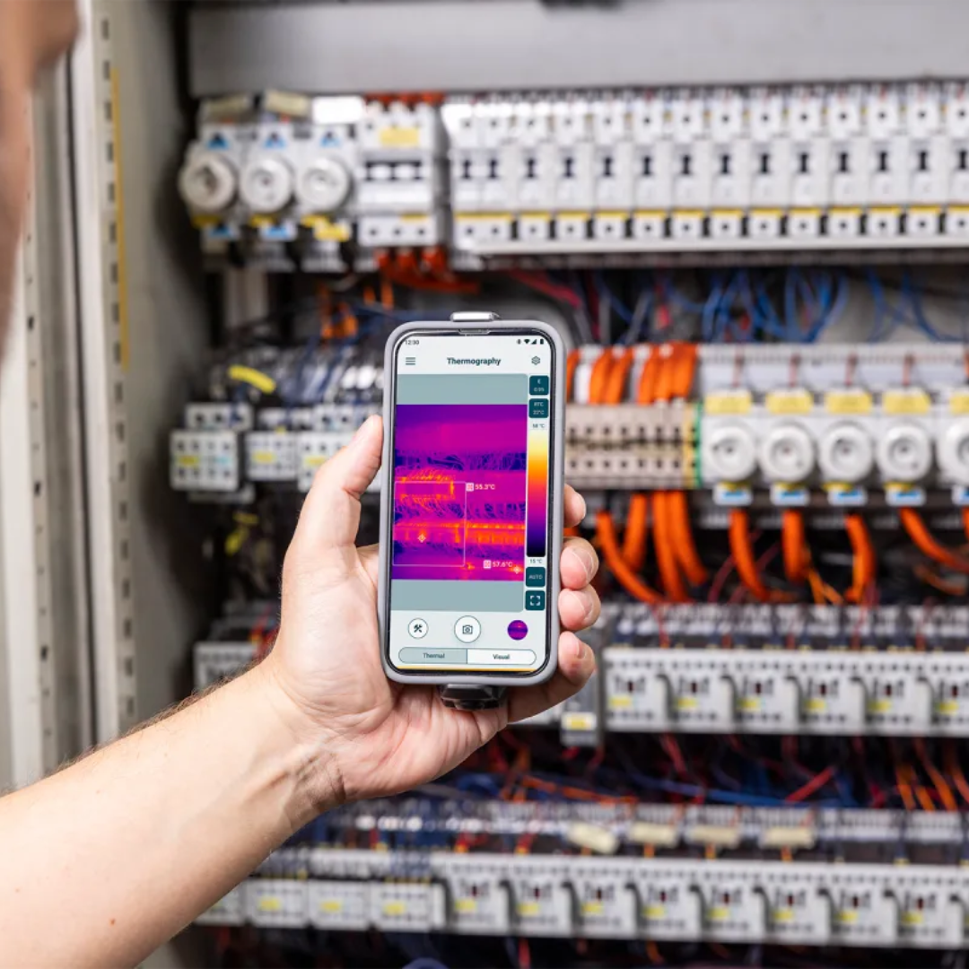 - Funkcja pomiaru termograficznego szybko i łatwo pokazuje gorące punkty i ΔT podczas konserwacji